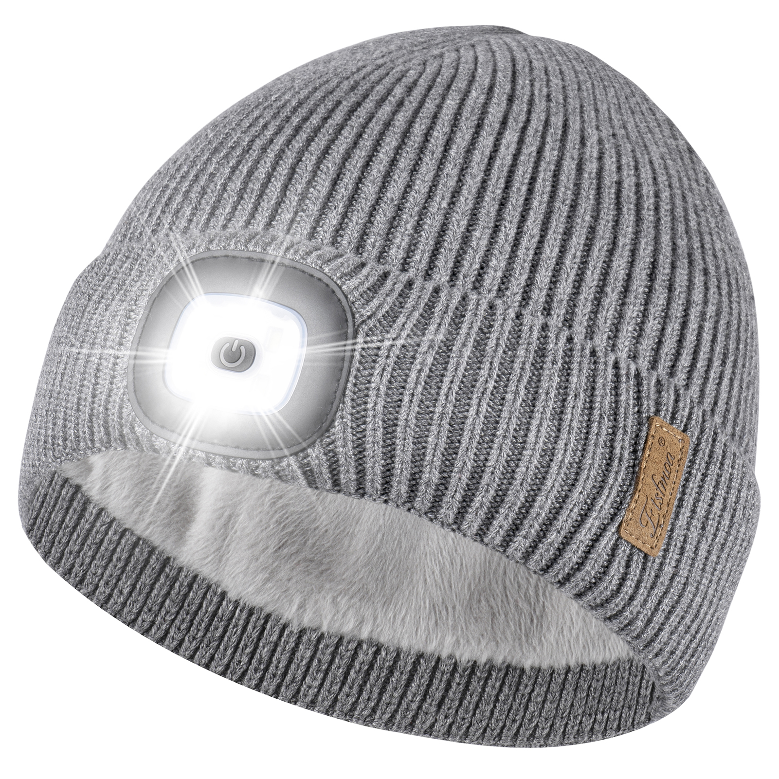 - One Size Fits All--This one-size-fits-all beanie knit hat with light is made from an ultra-soft acrylic blend that provides excellent insulation against cold winter air,Can fit most head sizes for men and women.